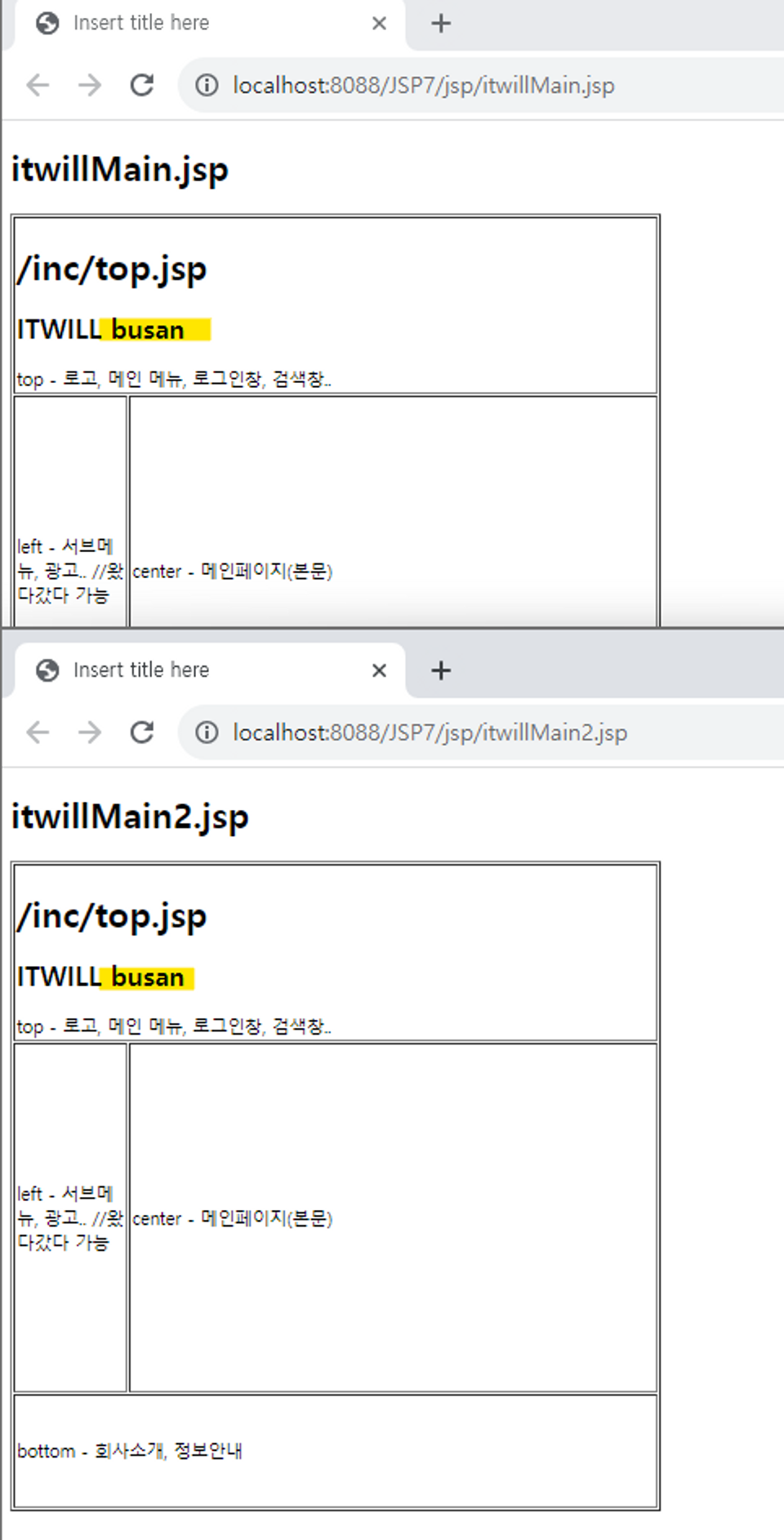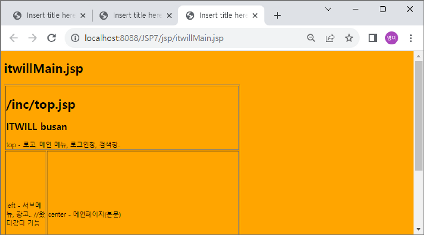 => 페이지를 컴파일 후에 include해서 사용한다. (만들어진 걸 추가함)