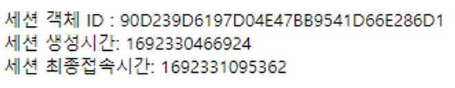세션 최종접속시간: <%=session.getLastAccessedTime() %><br>