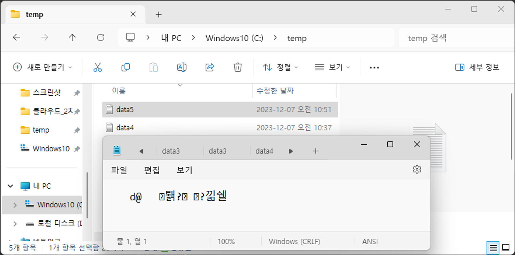 윈도우 운영체제에서 메모장을 바로 열면 내용이 안나옴