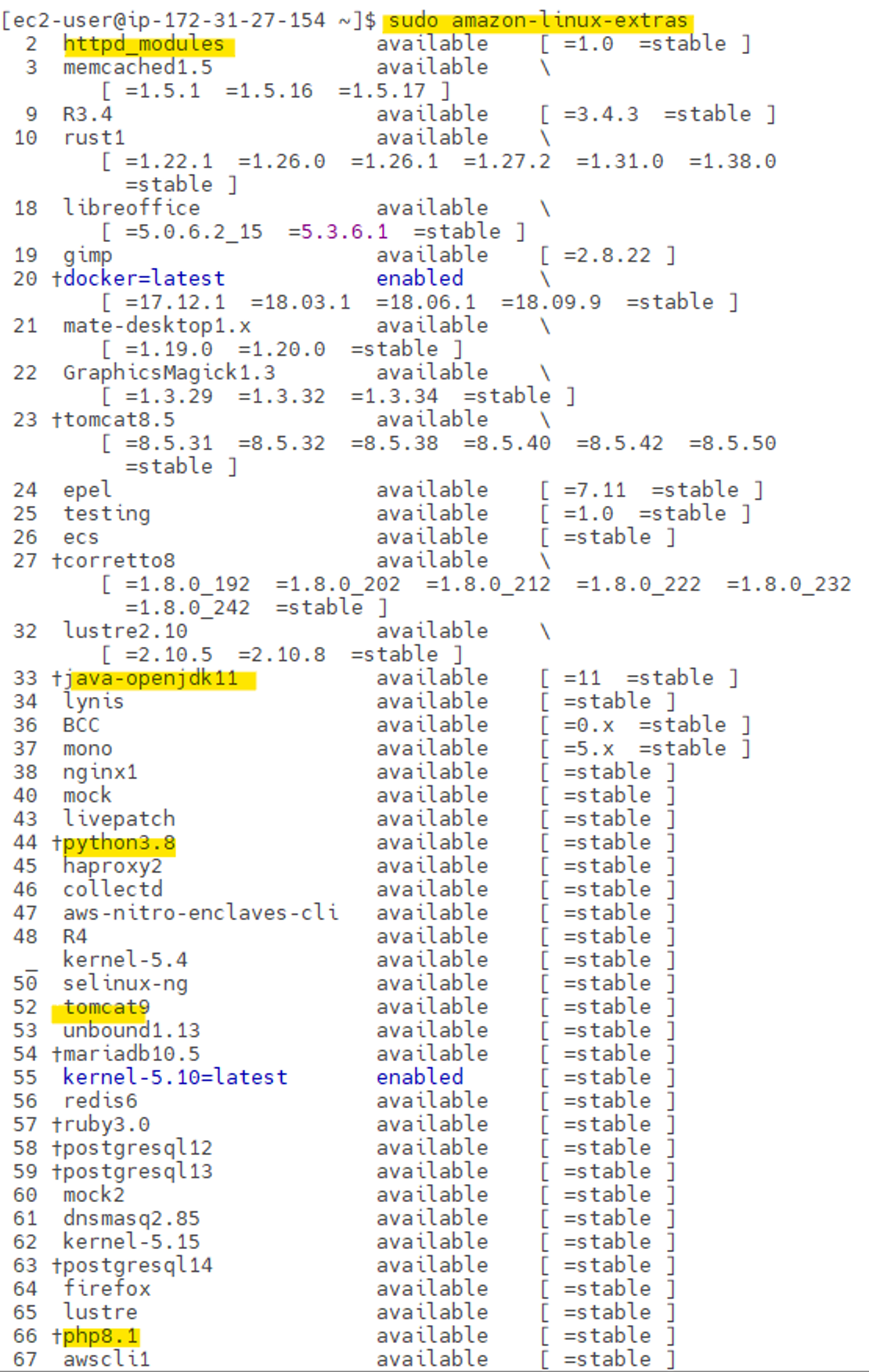 sudo amazon-linux-extras