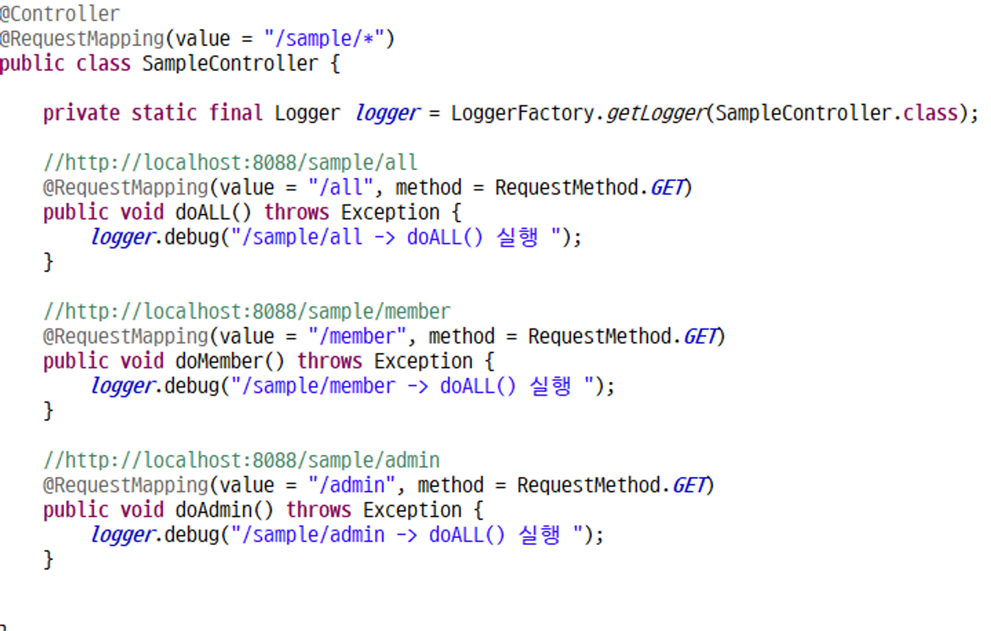 SpringSecurity/com.itwillbs.controller /SampleController 생성
