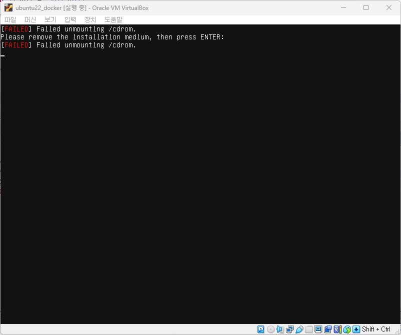 - cdrom 언마운트 실패 시 그냥 엔터를 쳐도 넘어가진다.